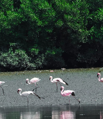 While the land side teems with colorful bee-eaters, chirping munias, and melodious bulbuls, the waterside attracts a variety of waterfowl, including cormorants, elegant black-winged stilts, graceful sandpipers, and majestic gulls. And let's not forget the showstoppers - the magnificent flamingos, painting the landscape with their vibrant hues of pink and gray.